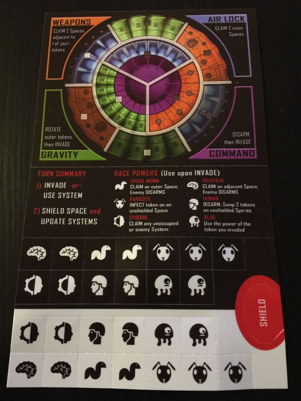Description from the publisher: Command units with unique race powers to take over systems in the base. Then turn those systems against your opponent! Space Base Mutiny is a fast-paced game with a sci-fi theme. The goal is simple; a player wins when he or she has used up all of her tokens. On your turn, you can use a unit to invade an enemy space OR remove...