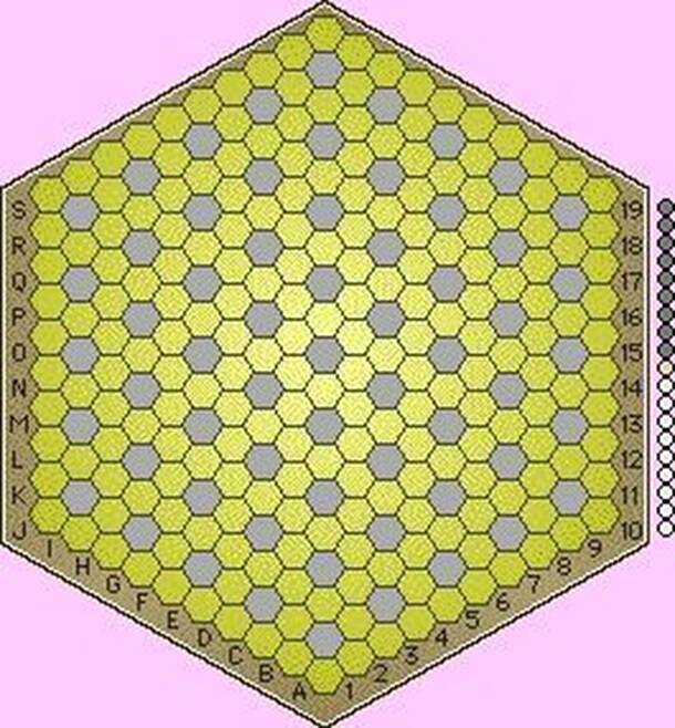 2, 3 or 4 players Materials A hexagonal board with 5 hexagons per side, 64 stones in four colors, 16 red, 16 yellow, 16 green and 16 blue. You will also need a small drawstring bag. Definitions Group – A set of like color connected stones, a single stone is also considered a group. Rules The board is placed between the players and starts out empty. Place 4...