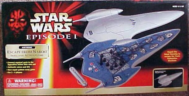 Sleek, elegant and breathtaking, the transport vessel used by Queen Amidala of Naboo is a handcrafted J-type ship powered by a 327 Nubian engine, specially crafted for the young leader. In keeping with the peaceful nature of the Naboo people, the Queen's ship has no weapons, only deflector shields. Queen Amidala uses her ship to escape the Trade Federation...