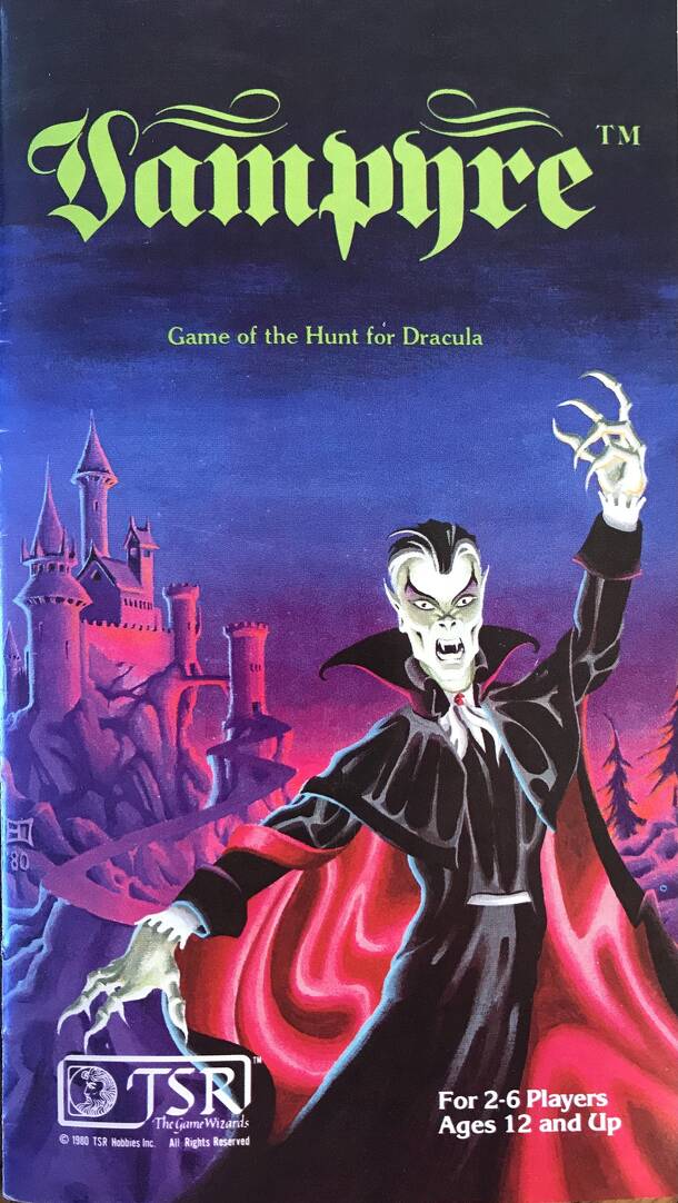 Part of TSR's minigame series. From the rulebook... "The Vampyre game is faithful to Stoker's original novel. It may be played by up to 6 people, each playing the role of one of Stoker's characters. Many of the game elements are also derived from the book. In Stoker's novel, Dracula did indeed hide coffins in various secret locations so that he would...