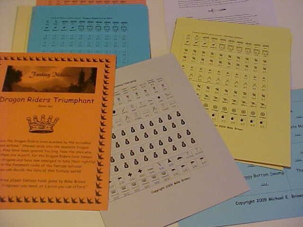 Publisher blurb Fantasy Nations is a game played on a tabletop where each player controls his own nation in a fantasy world. Each game is a new experience since players create the game “board” anew each game by placing large cardstock terrain tiles on the table. Players conquer territory, recruit new units, draw magic items, gold, healers, heroes...