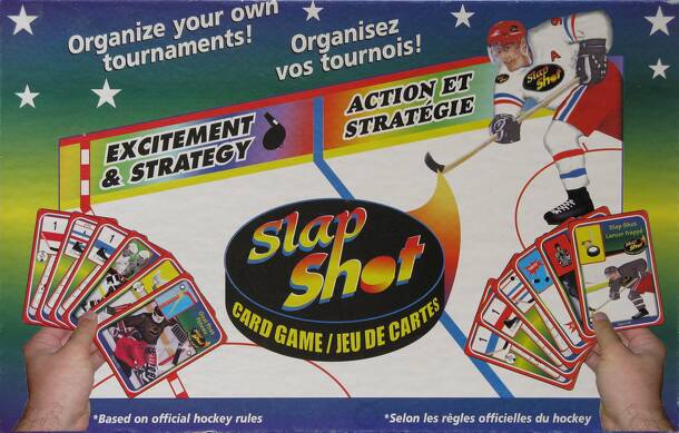 From the box: One on one or with teammates, win the opening face off and take control of the puck. SLAP SHOT cards let you make sequences of moves to advance the puck into the offensive zone, to take a shot and score a goal. But, watch out! Your opponent might have an interception card or throw you a penalty. With SLAP SHOT you'll experience the thrill of...