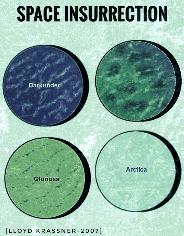 Space Insurrection is a Strategic level multi-player board-wargame of Inter-Stellar conquest available free at http://www.angelfire.com/games2/warpspawn/Insur.html. The map consists simply of ten worlds/planets/star systems. Each player begins with one loyal world with a Governor and a hand of 7 chits drawn from the pool. The pool consists of 10 of each...
