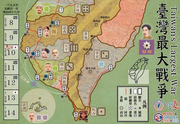 台灣最大戰爭:閩南 ("Taiwan's Largest War: Hokkien") is a 1-2 player strategic level wargame to simulate the Yiwei War in late Qing dynasty period in Taiwan. There are 7 rounds in one game. Player commands the Meiji government to conquer the Republic of Formosa in Taiwan. Imperial Japanese armies may move into the revolt areas and roll the die to attack Qing...