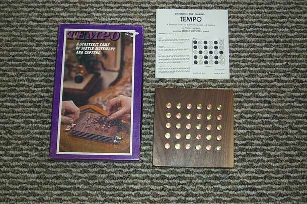 A strategy game of subtle movement. Game comes with a wooden board with 15 gold and 15 silver pegs. Points are scored for all opponent pieces still left on the board. The board is set up as per specific directions. Pieces may be moved only when flanked by 2 other pieces. Those pieces must lie in an unbroken straight line, vertically, horizontally of...
