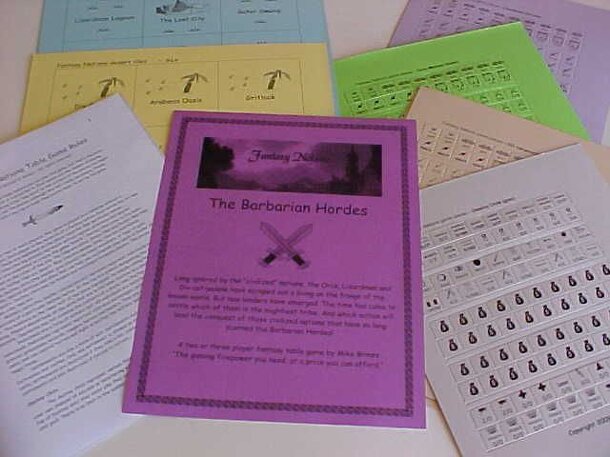 Political and military wargame set in a fantasy world. The players assume the roles of provincial kings set on conquest and consolidation. Two original editions of this appeared, one in Ares Magazine #3 and one in an SPI boxed edition. A revised edition was published 2001 by Jolly Roger Games. from the Basic Description section of the rulebook: "Barbarian...