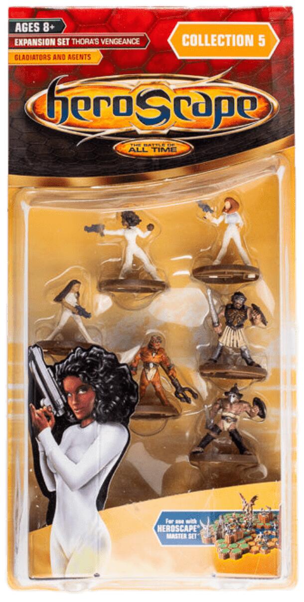 Gladiators & Agents adds 3 UNIQUE Heroes and 1 UNIQUE Squad to your Heroscape Army Contents: Nakita Agents (x1, 3 miniatures) Retiarius (x1) Crixus (x1) Spartacus(x1) Terrain: 2x Snow (2-hex) "Any who approach these warriors should use extreme caution. They could be blinded by the Nakita Agents' smoke power. Or lose their defense power in the massive net...