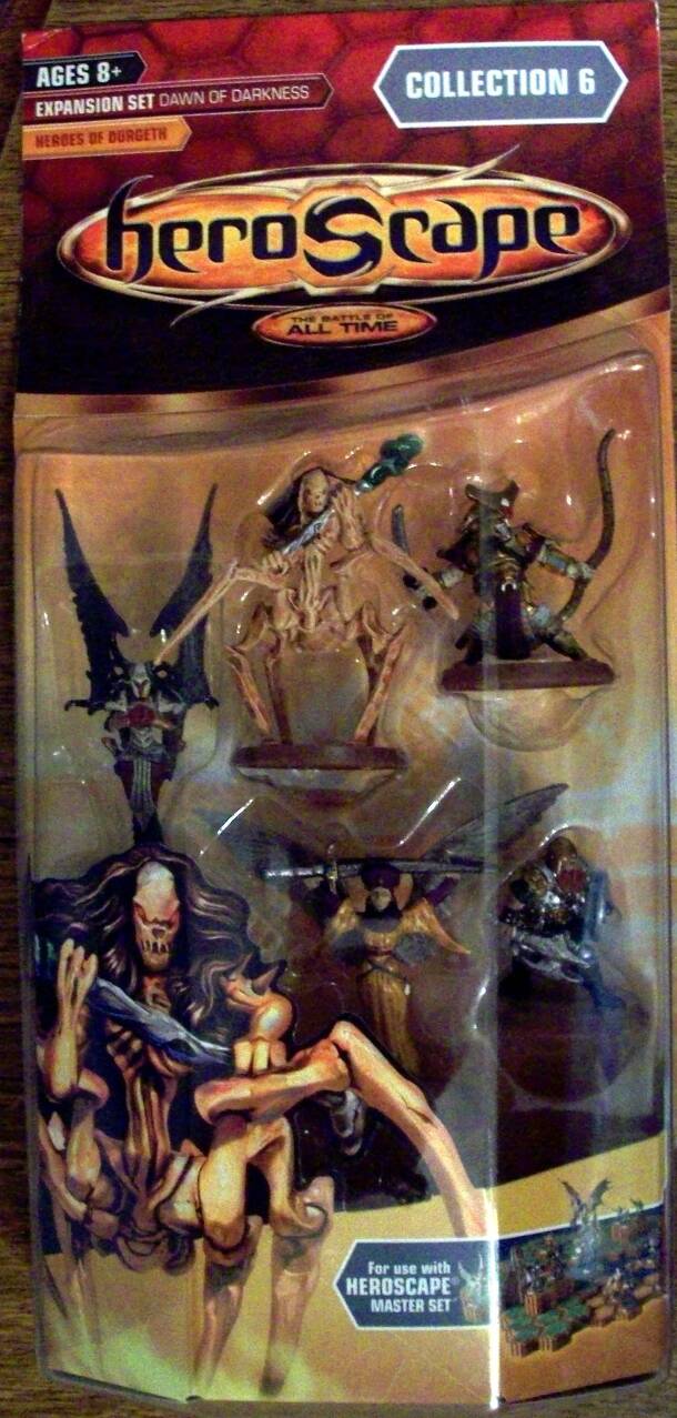 Heroes of Durgeth adds 5 Unique Heroes to your Heroscape Army Contents: Miniatures: Runa Kaemon Awa Empress Kiova Eldgrim Kee-Mo-Shi Terrain: 2x Snow (2-hex) "Runa's Helm of Mitonsoul can crush foes up to 3 spaces away. Kaemon Awa's double attack and counterstrike sap the enemy's life force. Toxic Skin and Mind Shackle give Kee-Mo-Shi a decisive edge....