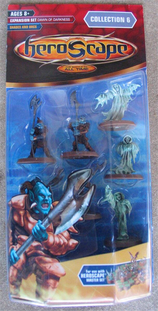 Dawn of Darkness: Shades & Orcs adds 2 COMMONsquads to your Heroscape Army. Common means you can field as many as points or starting zones allow. Contents: Shades of Bleakewoode (x1,3 miniatures) Heavy Gruts (x1, 4 miniatures) Terrain: 2x Snow (2-hex) "Shades of Bleakewoode: These ghoulish warriors take control of nearby Heroes with their insidious Soul...