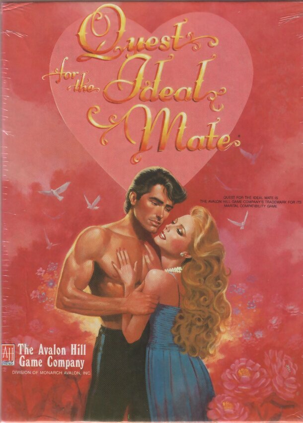 From the back of the box... "It's here!... the revolutionary new game that replaces dating bureaus, singles bars, sex therapy and marriage counseling. CAUTION. It is not for monks, nuns or hermits. Quest for the Ideal Mate is a game for the liberated male and female. You will discover who you are, who others are--and what you can be together! Playing with...