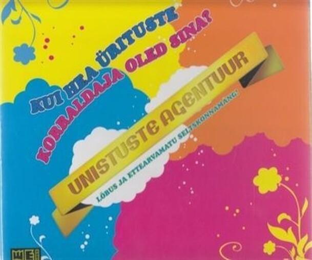 From the rules: Game is based on a TV show here in Estonia called "Unistuste Agnetuur" ("Dream Agency"). In it a story telling game in which each player must make a dream party for the customer. In each turn one player is a customer and all other players are dream party makers. Before customer takes a card from a theme deck, each player takes 1 card from 4...