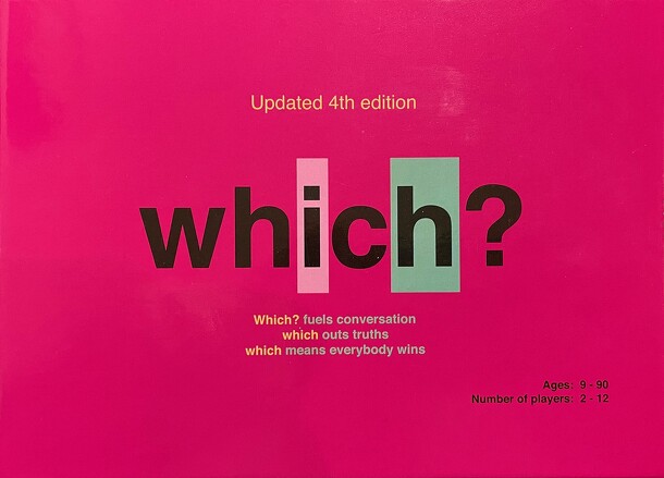 Which? is a game to get conversations going, get to know others and stepping into the minds of those you're playing with. In Which? cards are drawn which have have a number of options as answers to a would-you-rather question. Two dice are rolled to select answers and then the active player secretly selects which option of the two they would pick. Players...
