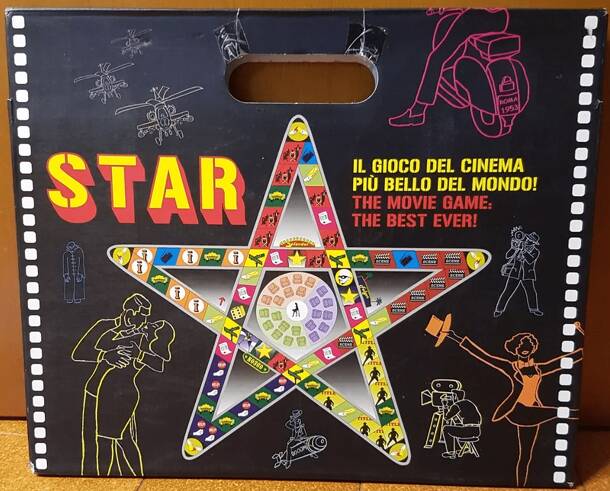 The player rolls a die, moves their token along a relatively free path, and collects cards containing various types of information until they feel confident that, with three of the collected elements, they can identify—among films historically released on the market—one whose title they know. At this point, they make their declaration and begin to claim...