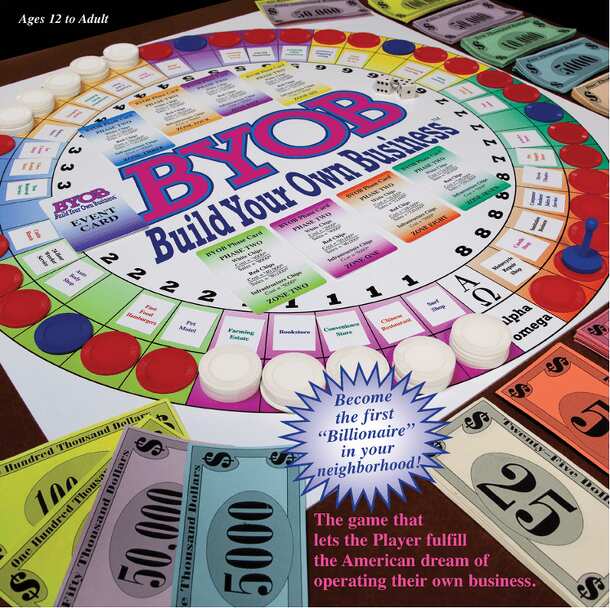 This unique board game can be played by yourself or with friends. You will start with $2000 dollars and try to build 40 successful businesses while earning hundreds of thousands of dollars, or you may go bankrupt trying. Each player will have 20 spaces on a round board to place white chips. These chips cost different amounts according to the zone in which...