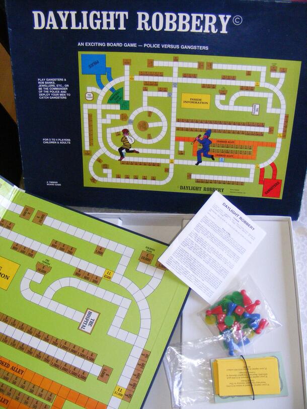 Roll and move game for 2-4 players. Players can either be gangsters attempting to amass £120,000 by robbing houses OR police attempting to capture all of the gangsters before this happens. If at any time the value of all of the unrobbed properties plus the total of cash that gangsters have amassed does not amount to £120,000, then the police automatically...