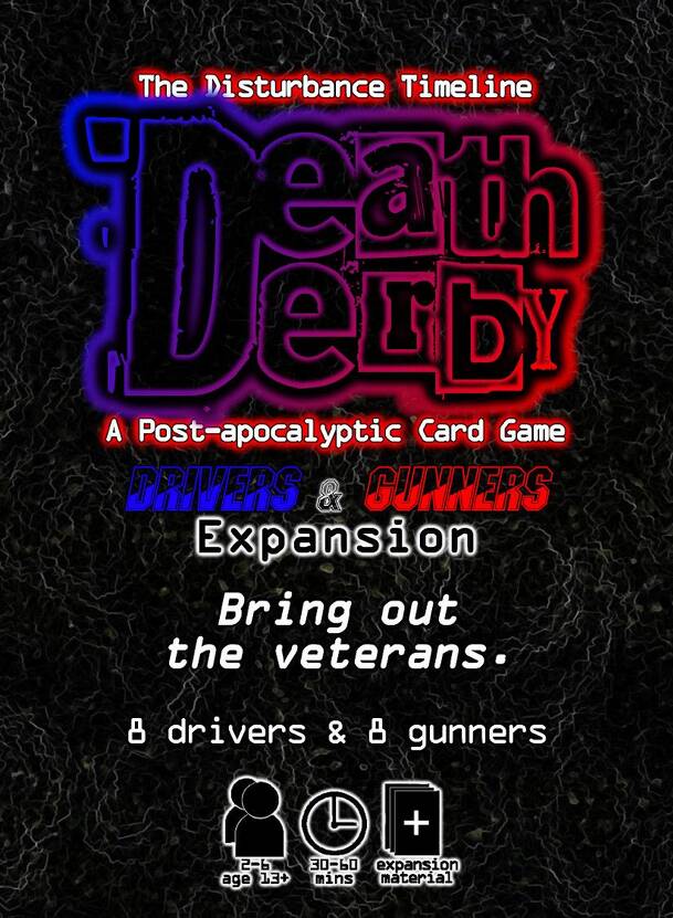 Nature is coming for you. This expansion requires the Death Derby: A Post-apocalyptic Card Game Core Deck. Nature is coming for you in the first Death Derby expansion that introduces weather effects to expand your tactics and take on multiple opponents at once. These 35 cards bring Nature's Rage to your Death Derby game and leave your opponents scrambling...
