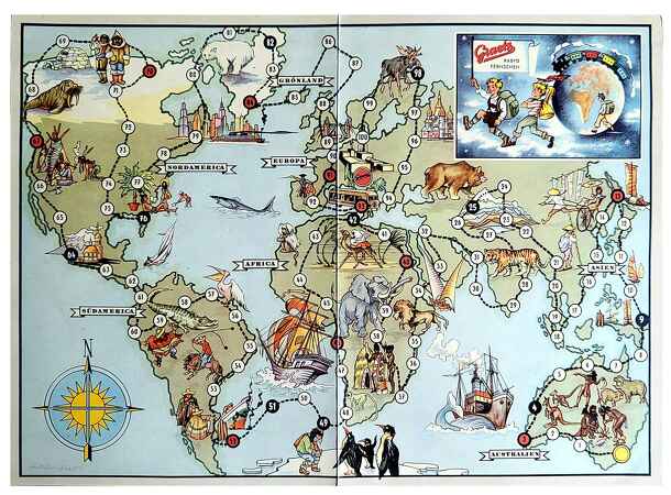 Objective: be the first to travel to arrival point learn more about folks and country - simple 'Roll and Move' game, moving by turn - rolling the die each player starts in Dresden you can't kick opponents ==> your can't move if you would meet another meeple follow instructions of field you land on - description/characterization of the place you reached is...