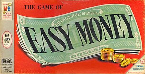 This game features a caricature of entertainer Eddie Cantor on the box and a photo of him on the board, though the singer/comic's persona has little do with the game. Players move their pawns (representing automobiles) around the board by playing cards that represent traffic signals. A twist to the game involves the "To See the Judge" spaces on the board....