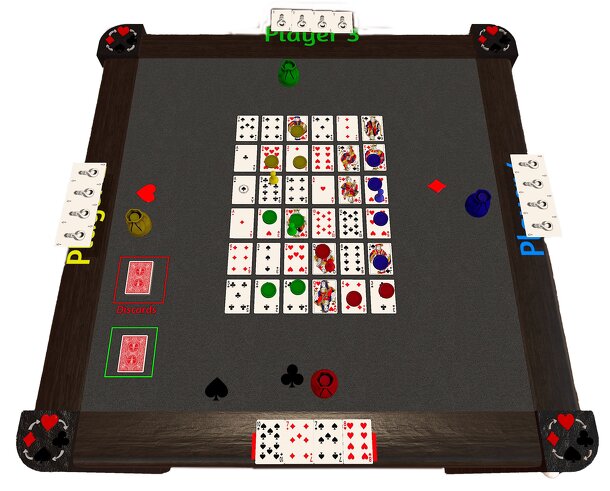 Trumped! is a multi-player card game that is won using strategy and cunning to capture cards and trap unwary opponents. It is hosted on Steam Workshop via Tabletop Simulator and uses two standard decks of playing cards to create a battle grid and to deal player cards. Player tokens are used to move around the grid and chips are used to capture cards. A...