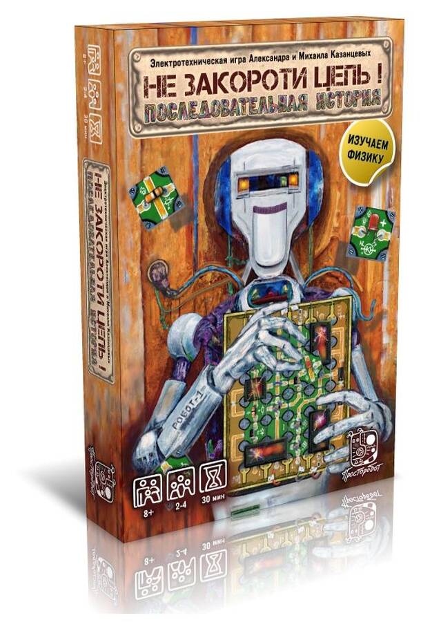 The goal of the players is to repair the electrical circuit of the robot's communication panel by installing token modules with electronic components and laying closed electrical circuits from plus to minus power, trying to light up as many bulbs and LEDs as possible. In this case, short circuits, high current supply to the LEDs and improper installation...