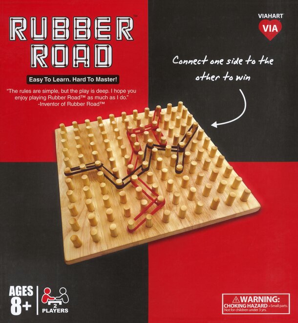 Rubber Road is a connection game which uses rubber bands as the game pieces. The object of the game is to continuously connect opposing sides, while your opponent tries to do the same in the perpendicular direction. Opposing color rubber bands may not overlap. The best games are those with simple rules, but deep and complex strategies. Anyone can learn to...