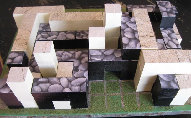 SteinPlatz is an offensive/defensive game for two. Using cut "stone" blocks in different shapes and sizes, players alternate placing them on the board, with the first to join both sides of the "Quarry" winning the match. Out maneuver and cut-off the path of your opponent by stacking your stones around each other or over each other, cutting off their path....