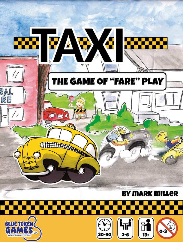 Taxi is a light strategy, route building, tile placement game with a little bit of take that mechanics mixed in. Players play the role of taxi drivers, navigating a growing cityscape. The goal is simple yet challenging: create an unobstructed route from a starting location to an ending location, as shown on your Fare card, using a variety of road segment...
