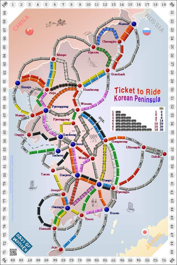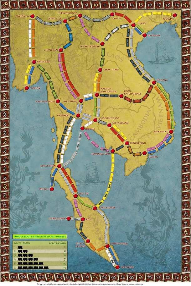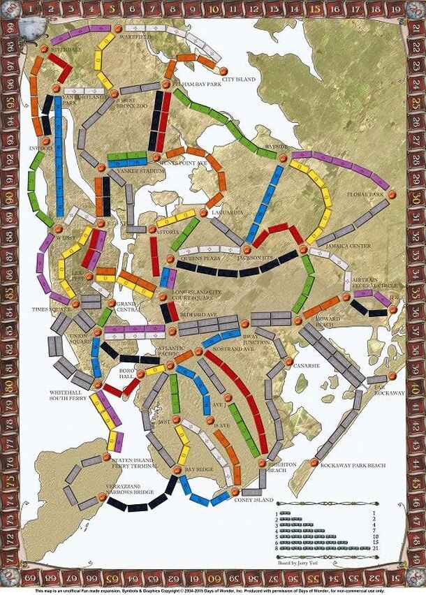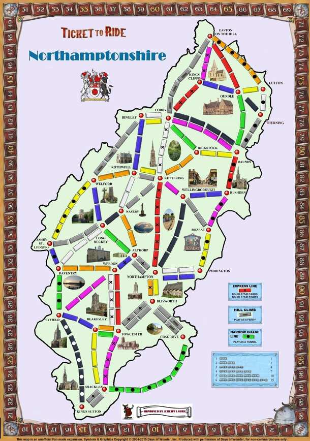 This map is an unofficial Fan made expansion. Symbols & Graphics Copyright © 2004-2015 Days of Wonder, Inc. Produced with permission of Days of Wonder, for non-commercial use only. This follows the principles of the basic Ticket to Ride game on a special board with special cards and rules. The object of the game is to gain the most points by travelling...