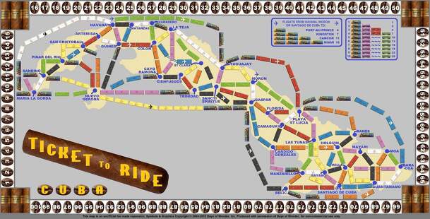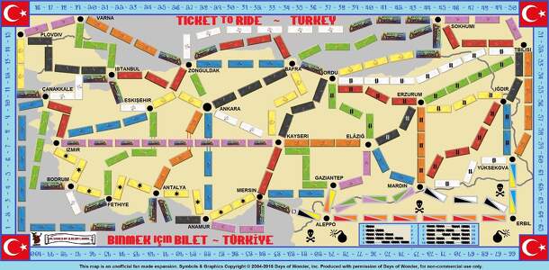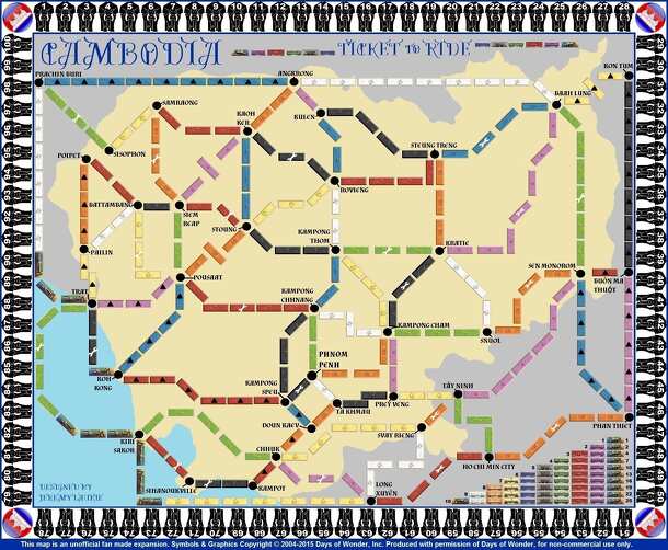 This map is an unofficial Fan made expansion. Symbols & Graphics Copyright © 2004-2015 Days of Wonder, Inc. Produced with permission of Days of Wonder, for non-commercial use only. This follows the principles of the basic Ticket to Ride game on a special board with special cards and rules. The object of the game is to gain the most points by travelling...