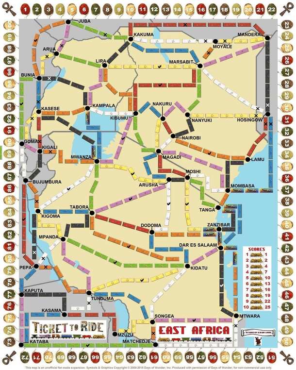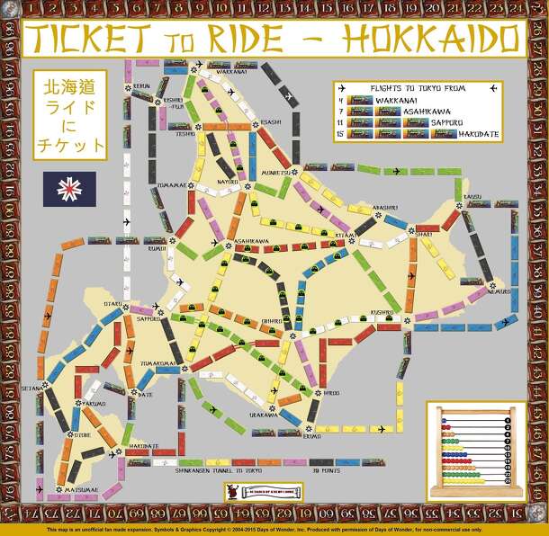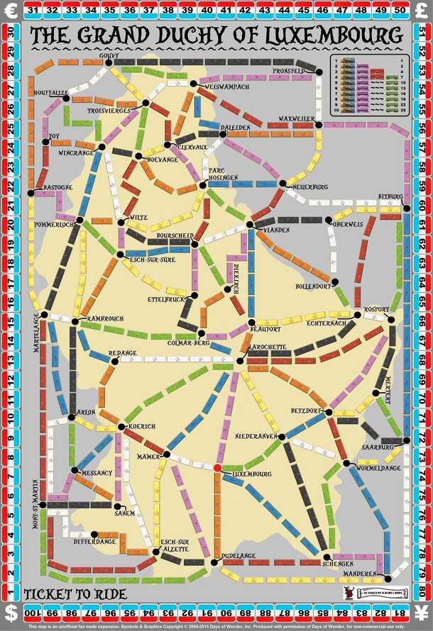 This map is an unofficial fan made expansion. Symbols & Graphics Copyright © 2004-2015 Days of Wonder, Inc. Produced with permission of Days of Wonder, for non-commercial use only. This follows the principles of the basic Ticket to Ride game on a special board with special cards and rules. The object of the game is to gain the most points by travelling...