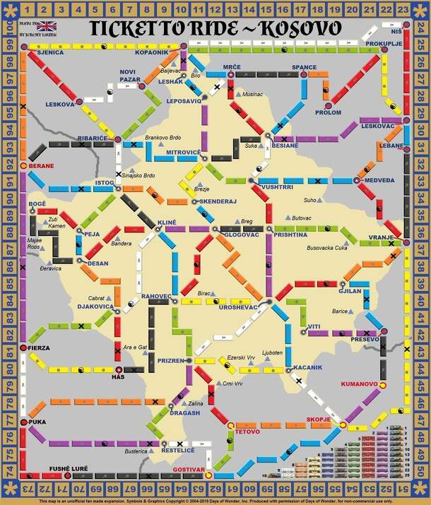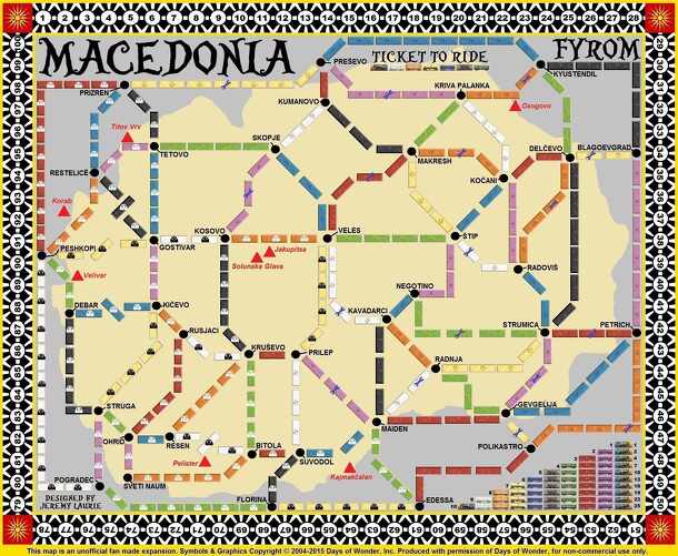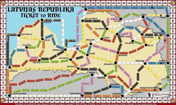 This map is an unofficial fan made expansion. Symbols & Graphics Copyright © 2004-2015 Days of Wonder, Inc. Produced with permission of Days of Wonder, for non-commercial use only. This follows the principles of the basic Ticket to Ride game on a special board with special cards and rules. The object of the game is to gain the most points by travelling...