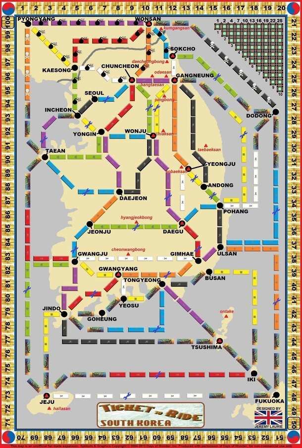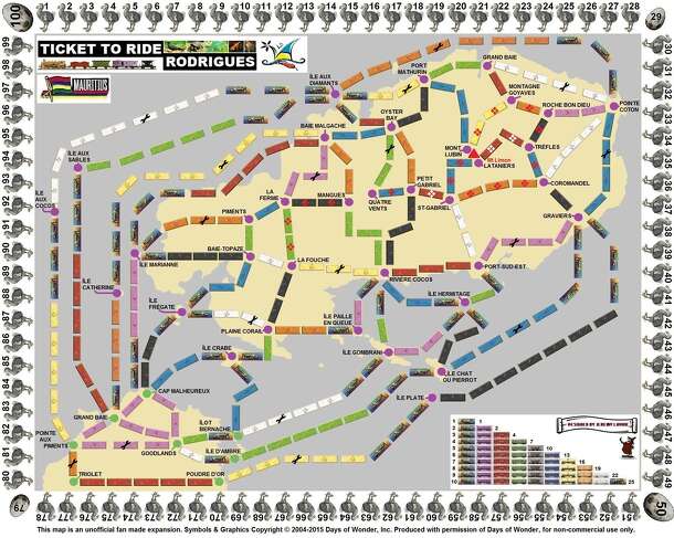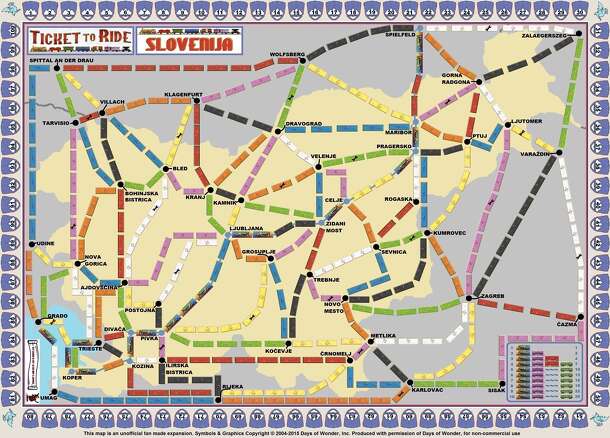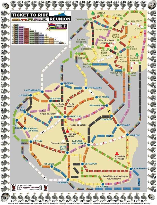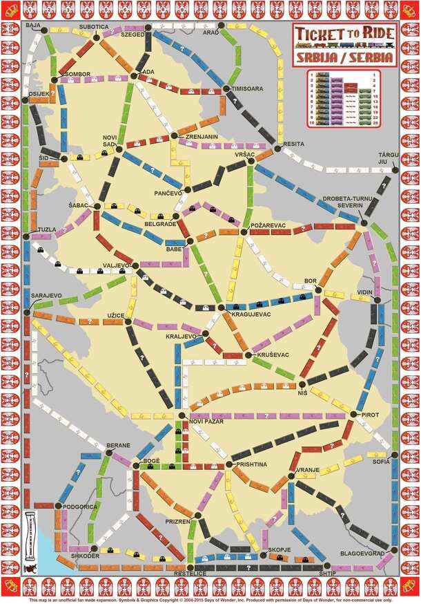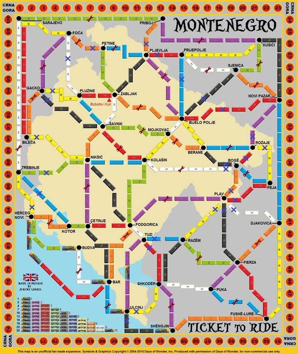 This map is an unofficial fan made expansion. Symbols & Graphics Copyright © 2004-2015 Days of Wonder, Inc. Produced with permission of Days of Wonder, for non-commercial use only. This follows the principles of the basic Ticket to Ride game on a special board with special cards and rules. The object of the game is to gain the most points by travelling...