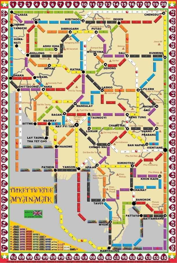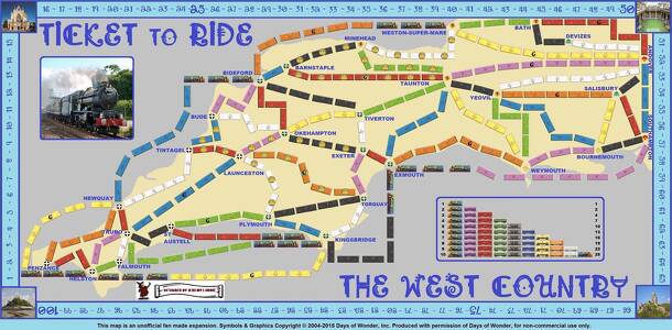 This map is an unofficial fan made expansion. Symbols & Graphics Copyright © 2004-2015 Days of Wonder, Inc. Produced with permission of Days of Wonder, for non-commercial use only. This follows the principles of the basic Ticket to Ride game on a special board with special cards and rules. The object of the game is to gain the most points by travelling...