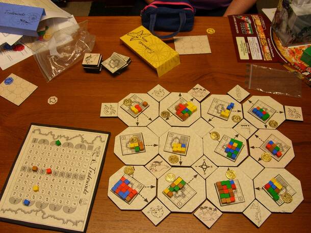 The object of ‘Tradewinds’ is to earn victory points by controlling valuable trade routes. As colonists develop the local infrastructure, many islands will experience an economic boom. Before that happens, dominate the exports of an island by investing there more heavily than others...but the value of those exports depends on the population demanding the...