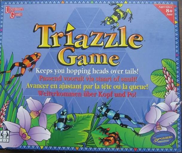 Race from one side of the board to the other by matching heads and tails of the frogs as you go. Strategically block your opponents' pieces and make the right connections to earn extra turns! But look before you leap...your nine pieces must all travel connected together. Once you've successfully moved your pieces across the board, the final challenge...