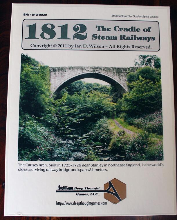From the introduction in the rulebook: 1812 is a member of the Series: 18xx series of games. The series is based on 1829, by Francis Tresham. 1812 is set in North-East England in the 19th century. Two to four players represent investors in railway companies, spending their initial capital to buy wholly owned Private and Minor Companies and later buying...