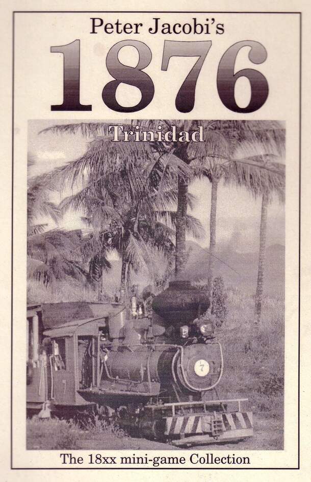 A fourth railway company for 1876: Trinidad, published in Rail Gamer Magazine #7. The kit consists of rules, a company charter and shares for the Cipero Tramroad, as well as four trains and two new tiles. It is only usable with the 1876-30 Variant of the base game. Intro from the rules sheet: "Peter Jacobi's 1876 (produced by Chris Lawson, 1996) is an...
