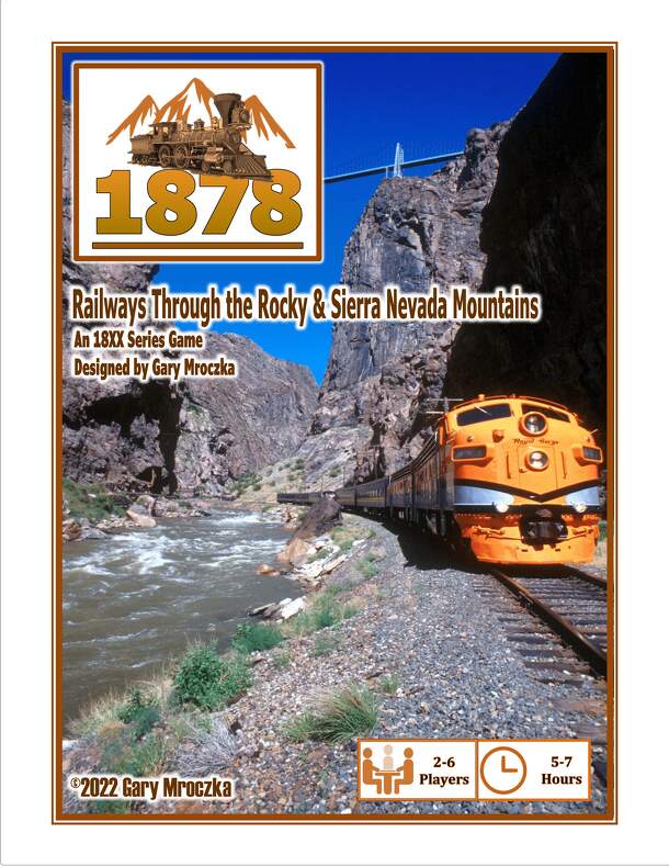 A new 18xx Series Game designed and published by Gary Mroczka located in Southwestern United States. Game comes with three types of Railroad Corporations, 1) Mining (3 share company, 50% President, two 25% other shares), 2) Short Line (5 share company, 40% President and three 20% shares) and Class 1 (9 share company, 20% President, eight 10% shares). The...