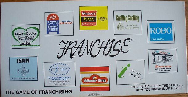 The object of the game is to become the wealthiest player by the buying and licensing of franchises. Genuine franchise companies are used in the game, such as Shakey's Pizza, Robo Car Wash, Wiener King, Lawn Doctor, Natural Cosmetics, and several others. Each player starts with $110,000. Players roll dice and move their pawns around the board, and may...