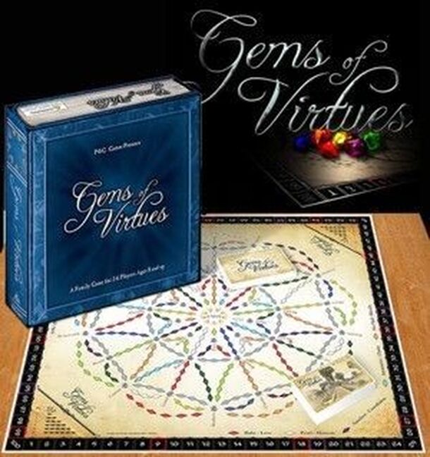 There are 37 virtues that can be connected by a variety of paths across the game board. Each colored path represents one of the virtues associated with a Virtue card. Players try to score as many points as possible during the game by placing their colored gems between the virtues specified on their path cards. Gems of virtues is a lightly themed...