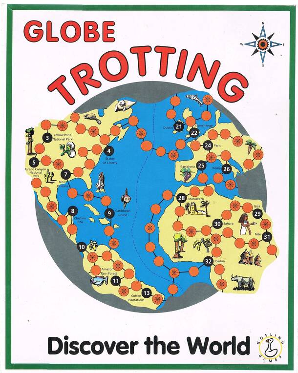 A famous globetrotter has made a secret journey and the players try to find out which famous sites around the world it included. This is done by removing some cards from a deck at the start and hiding them. The rest are distributed, and as a player reaches one of their destination cards they reveal it, but also get to see one of an opponent's cards as...