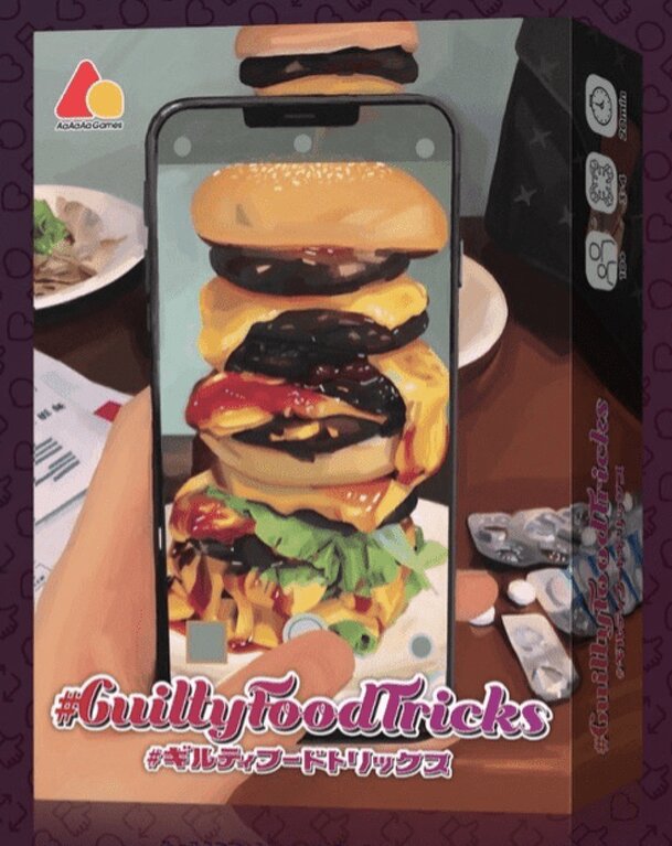 #GuiltyFoodTricks is a trick-taking game about posting attractive pictures of the food you're eating on social media - but be careful! If you post photos that become too sensational, it will take a toll on your physical and mental health. In game play, each suit is a different social media platform, and higher ranked cards will be more likely to win a...