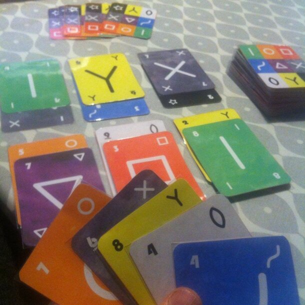 Holistic is an abstract sequencing game that combines set-collecting and trick-taking in a compact 81-card deck. Each card has a number from 1 to 9, and one of nine shapes. Win by taking the most quints, or placing the final matching card in a sequence. The original name of this game is long lost and is mostly referred to as a holistic quint sequencing...