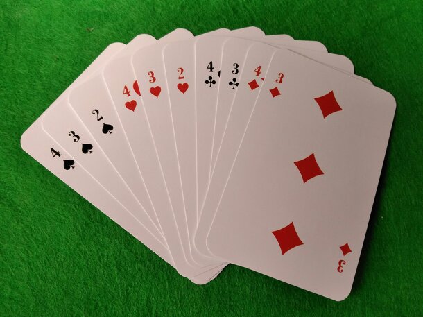 This game is composed by 30 cards divided in 6 suits, each one with 5 cards (values 2-3-4-5-7) On a game only 3 suits will be used, randomly or chosen by the players. On a round each player receives 7 cards and the remaining one is kept hidden. On a turn the starting player plays a card on his side of the player area. The other player must play a card of...