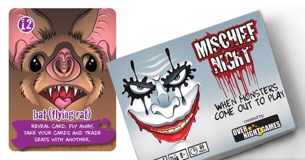 Card game where you must get rid of all your cards to win, but beware... the monsters are out to get you on Mischief Night. A light, fast paced card game for 3-12 players. Earn tokens by going out first and being named the Pumpkin King. The goal of Mischief Night is to get rid of all of your cards as fast as possible. The 92-card deck contains 78 monster...