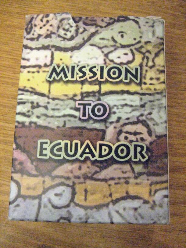 Mission to Ecuador is an entertaining and competitive card game of strategy for two to four players. Mission to Ecuador duplicates some of the real effort and uses some inspirational biblical verses required to establish a working mission as based on an actual mission to Ecuador. Source: [ The Publisher Website]. Players take turns drawing cards until a...