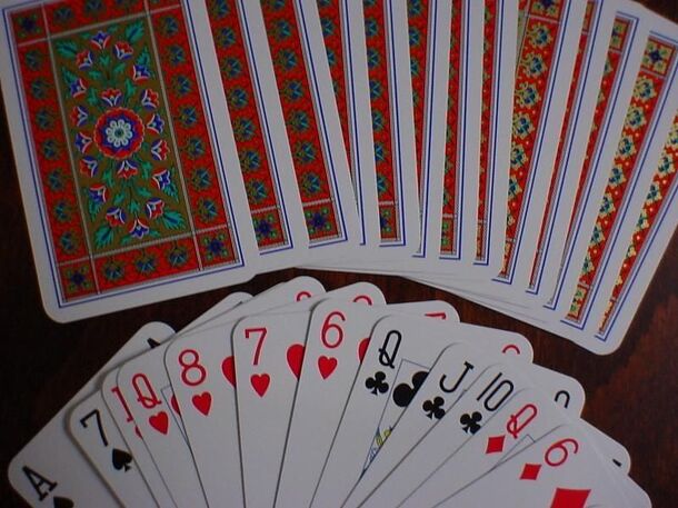 Mizerka is a plain trick taking game from Poland. it is played with a standard 52 card deck. Possible contracts are; suited, no trump or mizerka which is played in no trump and trying to take the least tricks possible. Bidding is slightly unusual in that the first six cards are dealt and the player to dealers left must then choose which contract to play...