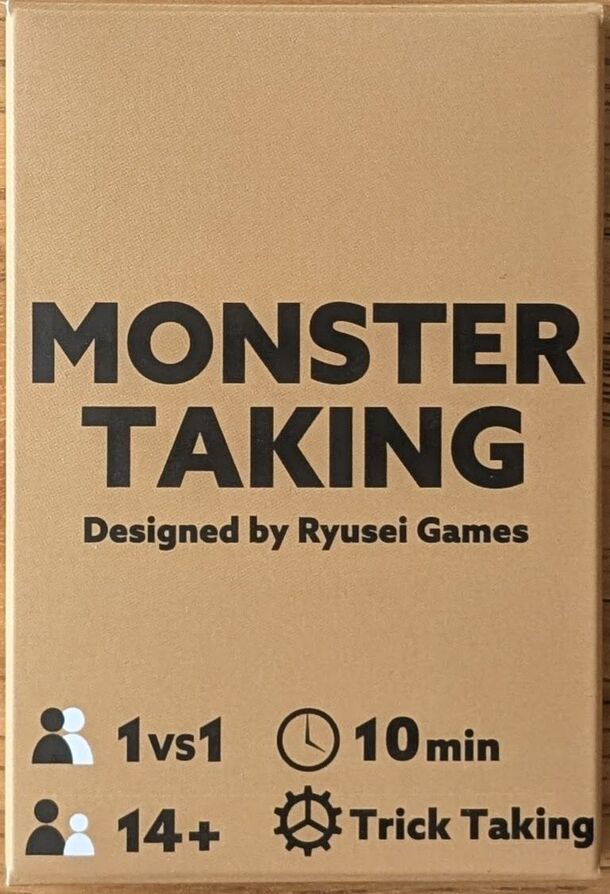 Monster Taking is a must follow trick-taking game for 2 players, with a player drafted trump suit. Each card has a certain number of pips on it, in addition to the rank. If the 2 players play the same suit, the person who loses the trick must give their opponent a number of cards from their hand equal to the difference of the pips on the cards in the...