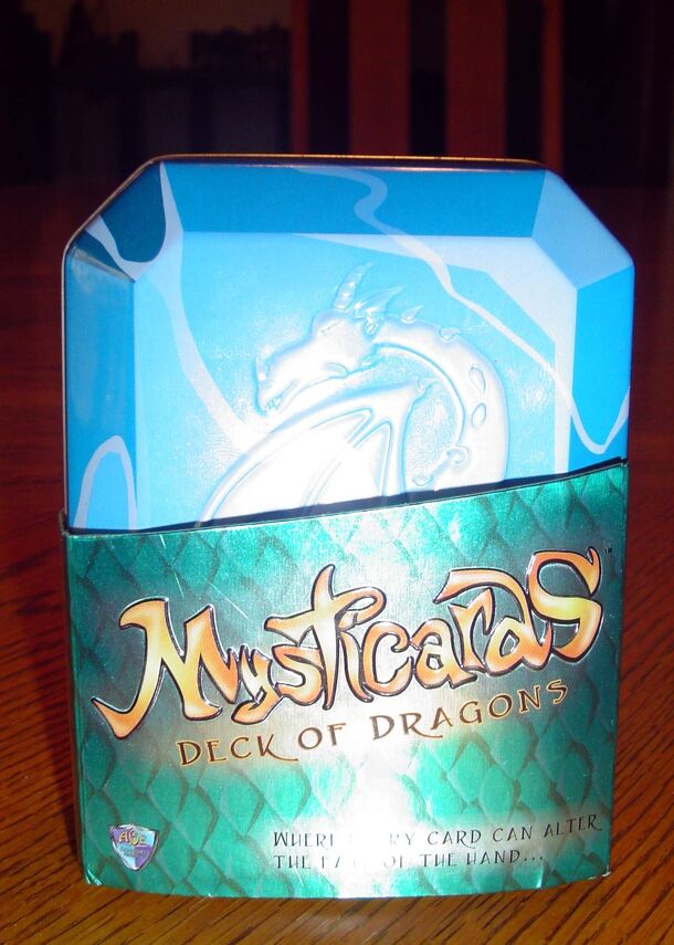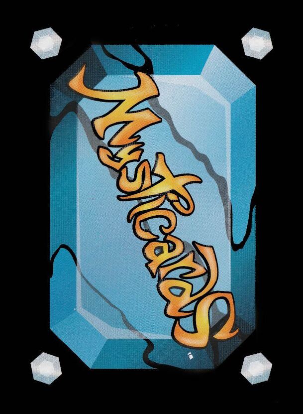 From the rulebook introduction: Mysticards is a card game designed for four players, Ages 8 and up, who are divided into two teams of two. One game consists of several hands, with each hand being made up of 15 tricks. During each trick, every player gets to play one card, with the best card winning the trick. Teams collect points for each trick they win....
