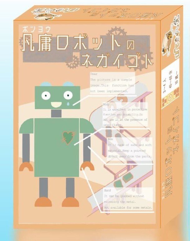 凡庸ロボットのネガイゴト ("Negaigoto of mediocre robots"), also referred to as "The Wish of a common robot", is a growing Must "Knot" Follow trick-taker. If you are to play a card of a suit already in play it will be ranked lower than all other cards played in the trick. Can your hand become stronger or, conversely, become weaker? What's more, you can select one card...
